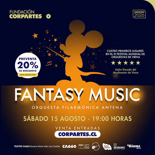 “Fantasy Music”, presentado por Fundación CorpArtes, es un proyecto acogido a la Ley de Donaciones Culturales del Ministerio de las Culturas, las Artes y el Patrimonio.