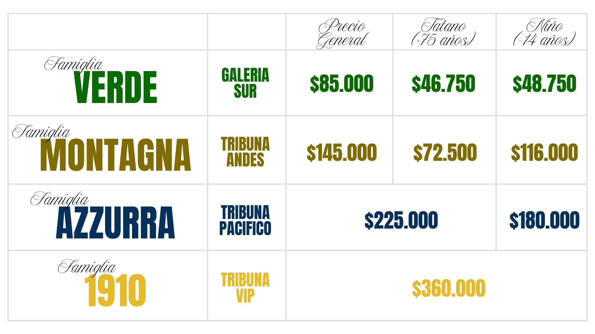 Todos los integrantes de la Famiglia 1910 y Azurra podrán escoger su asiento en las tribunas VIP y Pacifico donde tendrán reservado su espacio durante toda la vigencia de su abono.