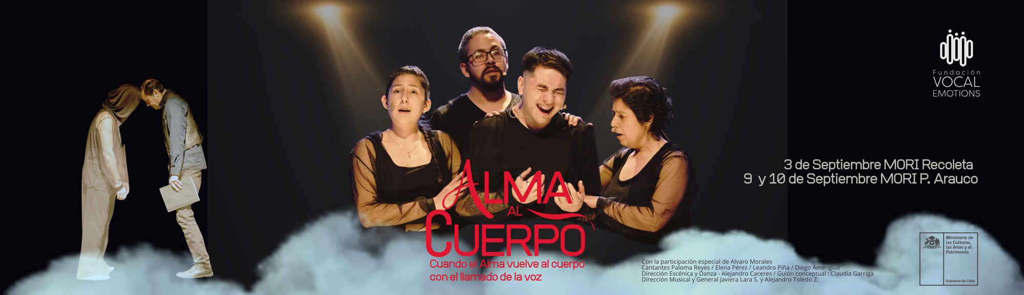 Guiada por el reconocido actor Álvaro Morales como narrador y el bailarín Alejandro Cáceres como intérprete corporal, junto a las voces de Paloma Reyes, Leandro Piña, Elena Pérez y Diego Amengual, “Alma al Cuerpo” presenta versiones corales de artistas como Los Jaivas, Tiro de Gracia, Natalia Lafourcade y Queen.