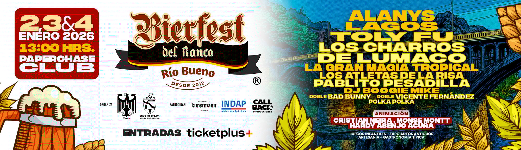 y 4 de enero, la Bierfest del Ranco 2026 se realizará en la Explanada Paper Chase de Río