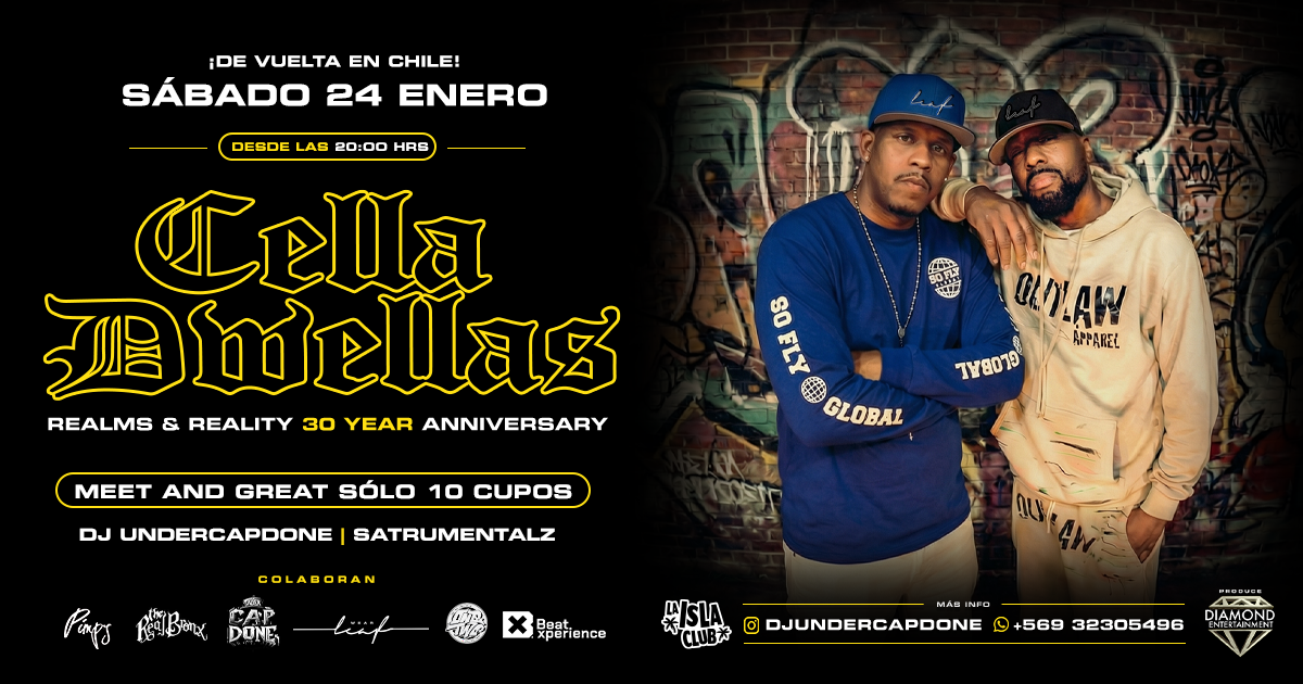 Originarios de Flatbush, Brooklyn, Cella Dwellas es un dúo legendario del hip hop underground neoyorquino formado por los emcees U.G. y Phantasm. Reconocidos por su lirismo crudo, beats oscuros y una estética callejera sin concesiones, marcaron una era con singles como “Land of the Lost”, “Good Dwellas” y “Perfect Match”.
