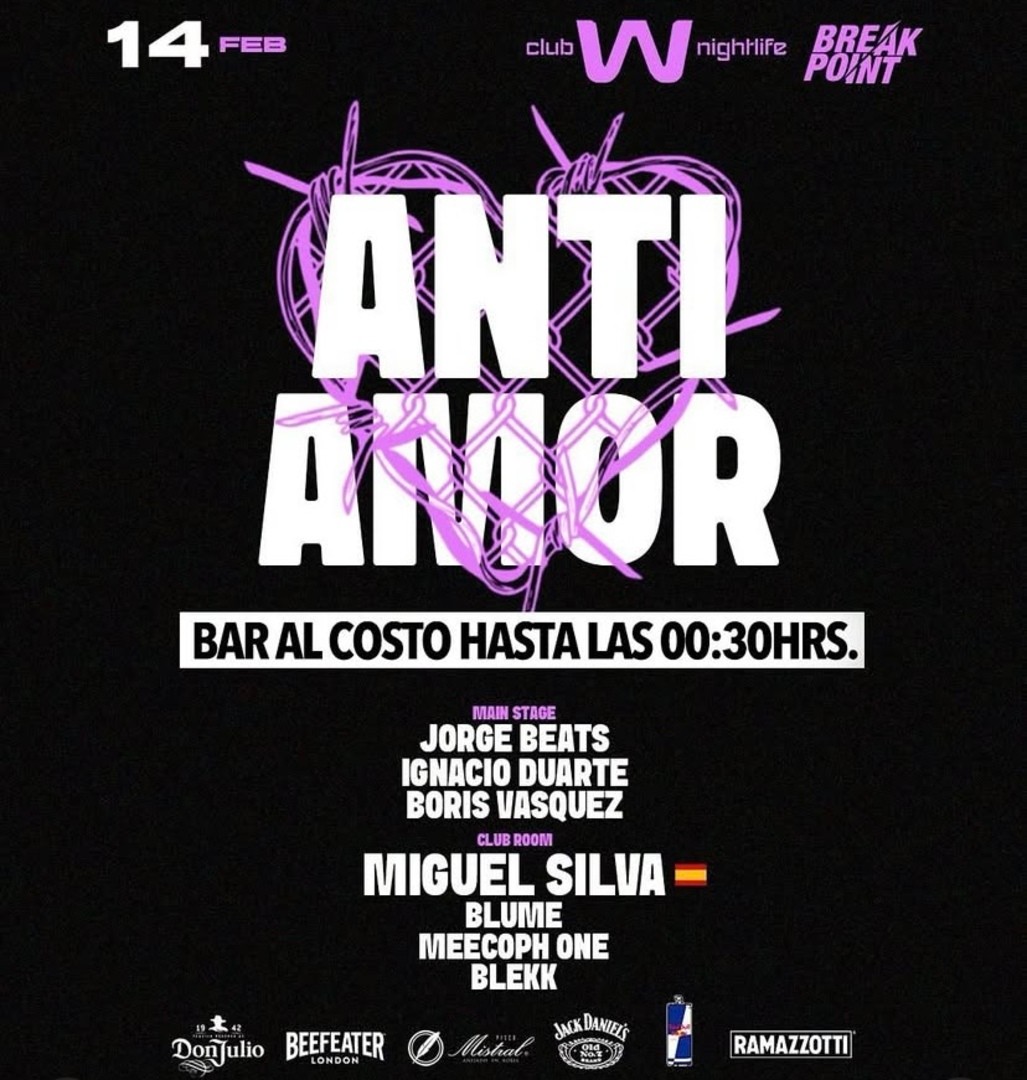 CLUB W PRESENTA "ANTIAMOR” VIERNES 14 FEBRERO