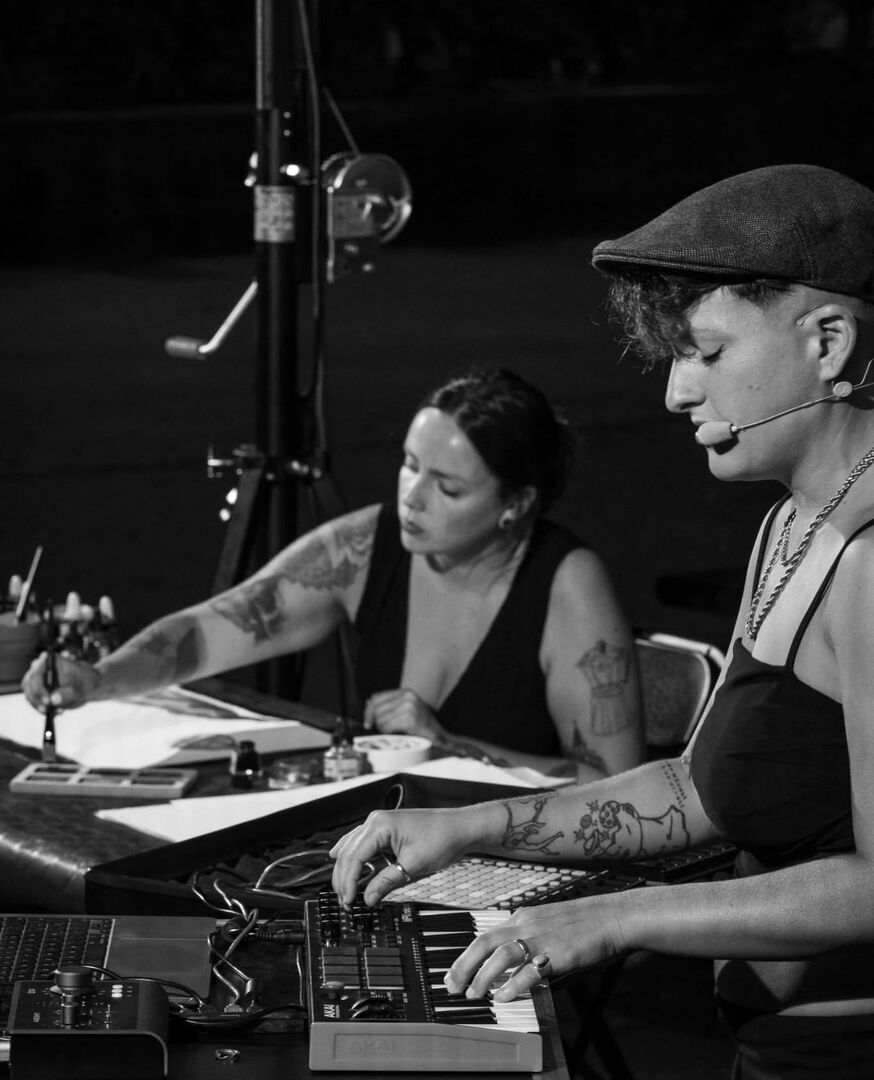 Este proyecto interdisciplinar es un espectáculo de escultura pictórica, sonora e histórica a cargo de Ángela Glezal y Belén Álvarez Doreste (LAJALADA), donde el escenario se convierte en un espacio de creación compartida: mientras la música explora nuevas formas a partir del folclore insular, la pintura en vivo se proyecta en gran formato, ofreciendo al público una experiencia sensorial en la que sonido e imagen.