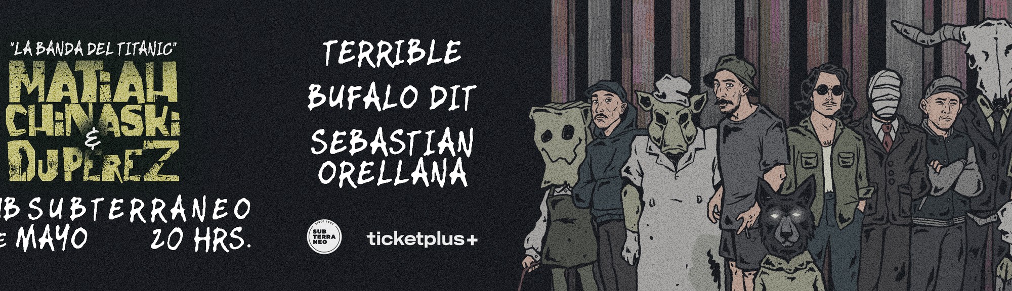 Este 9 de Mayo se presenta Matiah Chinaski & Dj Perez con la banda del Titanic (Terrible, Bufalo Dit y Sebastian Orellana) en el CLub Subterráneo en una noche llena de musica!!! Los esperamos