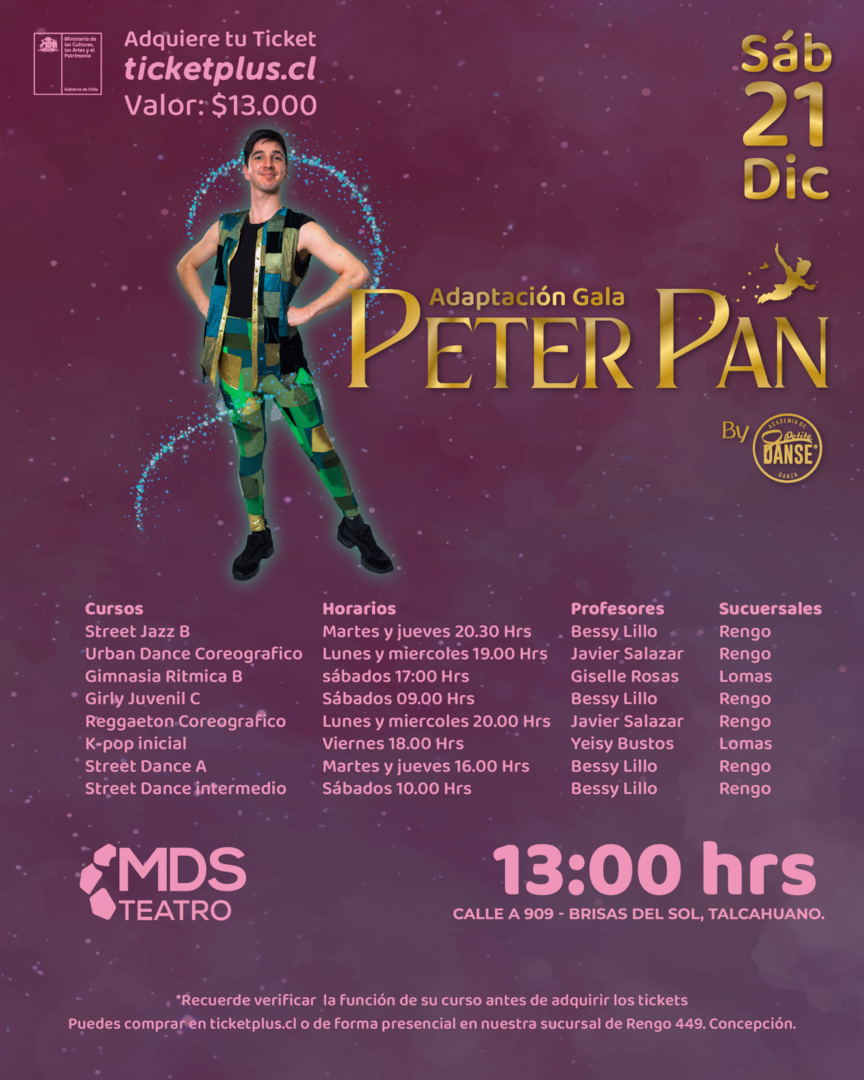 Lamentablemente el evento Presentación Artística Cultural Adaptación “Peter Pan” - Sábado 13:00 hrs ya no está disponible,