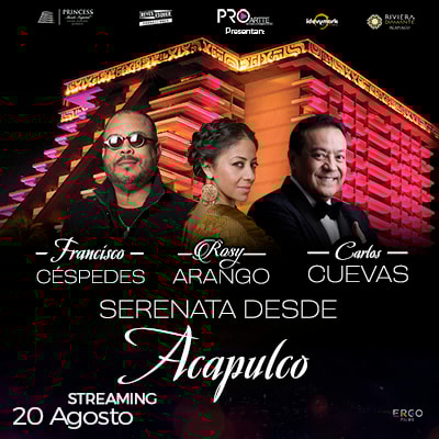 Lamentablemente el evento SERENATA DESDE ACAPULCO CON FRANCISCO CÉSPEDES, ROSY ARANGO Y CARLOS CUEVAS ya no está disponible,